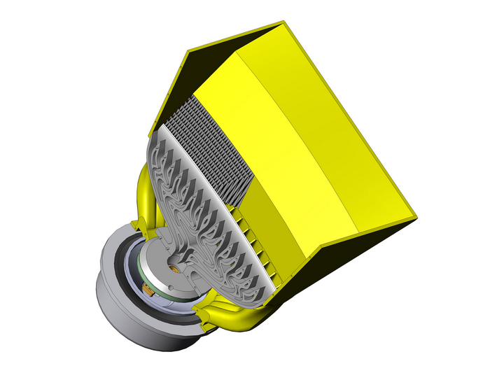 彎曲陣列音箱技術(shù)的核心是它位于中央的可旋轉(zhuǎn)的中/高音部分,它不僅可提供優(yōu)越的性能,而且具備超群的靈活性。高音和中高音驅(qū)動(dòng)單元為保持小尺寸而做同軸組裝,箱體設(shè)計(jì)精巧細(xì)密。驅(qū)動(dòng)單元分別用一個(gè)的樹枝狀高頻號(hào)角Dendritic?和一個(gè)中頻多號(hào)角Polyhorn?組裝在一個(gè)組合式的波導(dǎo)內(nèi),兩者使用相同的聲學(xué)原理:從振膜到號(hào)角口相等的波導(dǎo)管路徑長(zhǎng)度保證在號(hào)角口產(chǎn)生相同相位的波陣面。