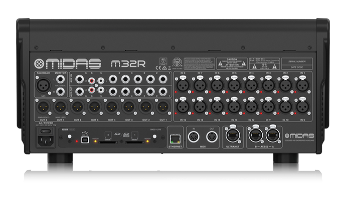 M32R Live采取耐用和輕質的碳纖維和鋁合金框架打造的配件。并且采用了多種合金材料以保證最大的組件效率和改善性能與重量比。Midas M32R Live是一款創新型、設計先進的調音臺。匯集了現代藝術氣息和高科技材料為造型,成為調音臺歷史上的一個里程碑。